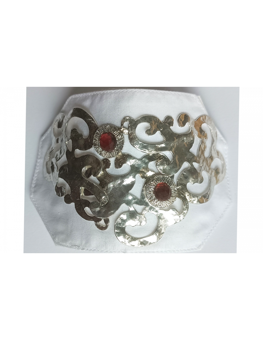 Nella danza il termine arabesque si riferisce ad una fra le più note figure del balletto e nella musica alla sinuosità delle note. La lavorazione di questo gioiello crea proprio armonia ed equilibrio fra la morbidezza delle linee e il colore dei granati naturali. E' realizzato in Italia completamente a mano in argento925 con tecnica di fusione a cera persa.